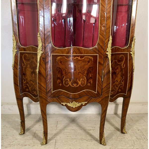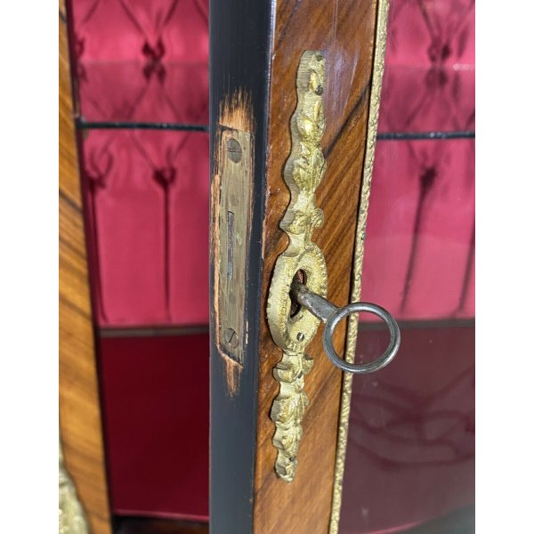 Condizioni: Buone condizioni, segni del tempo e dell'utilizzo, struttura sana, robusta e senza tarlo, vetri completamente sani, non ho notato sbeccature o filature, qualche bolla e qualche pezzo mancante sull'impiallacciatura, analizzare tutto attraverso le foto allegate in inserzione