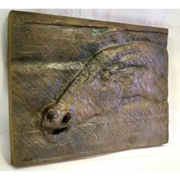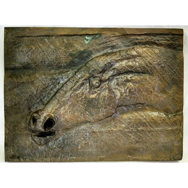 Ø TITOLO: Stupendo bassorilievo, formella in patina originale, raffigurante la figura di un cavallo, un profilo, opera di Bruno Cassinari talentuoso artista, quotato e presente in asta con altre opere.