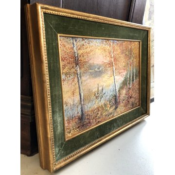 Note: Suggestivo dipinto, rappresentante un paesaggio lacustre con infinite sfumature nei toni tenui pastello e bruciati delle foglie in autunno... collezionisti, non perdetevelo!