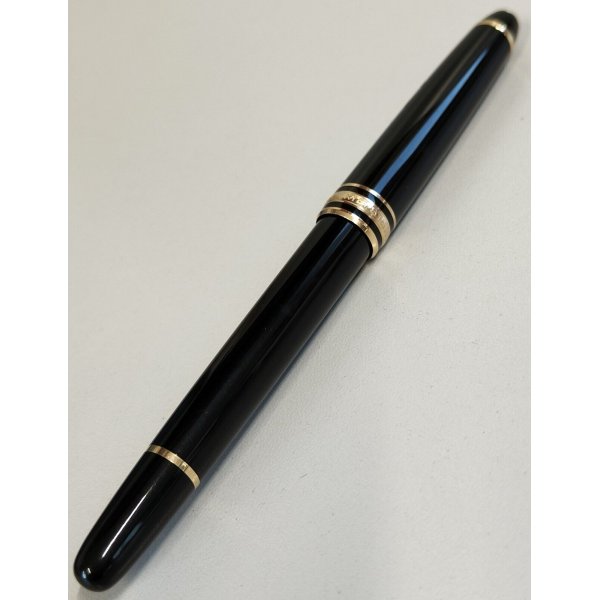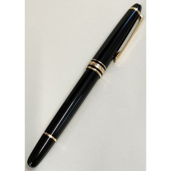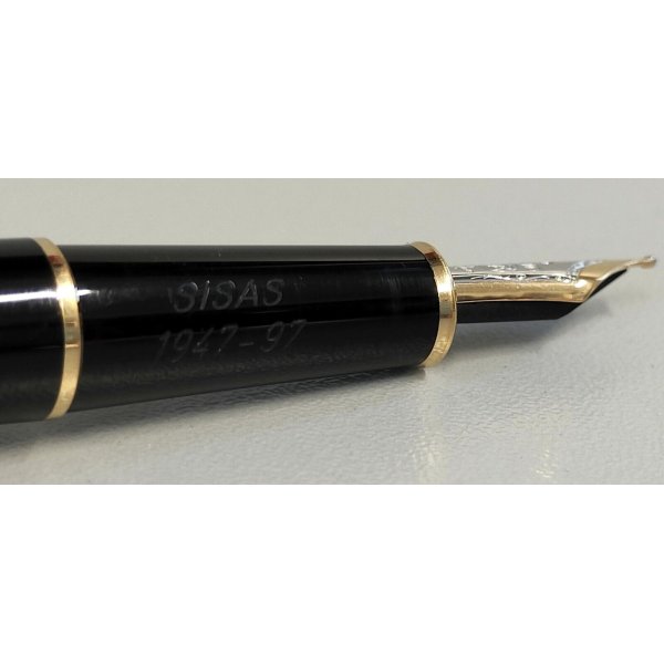 Bellissima penna stilografica vintage, Montblanc Meisterstuck, in buone condizioni conservative, corpo nero con clip e anelli oro, funzionante con converter originale Montblanc, presenta le iniziali L F sul cappuccio e la scritta SISAS 1947-97 sulla penna nella zona vicino al pennino che poi viene coperta dal cappuccio