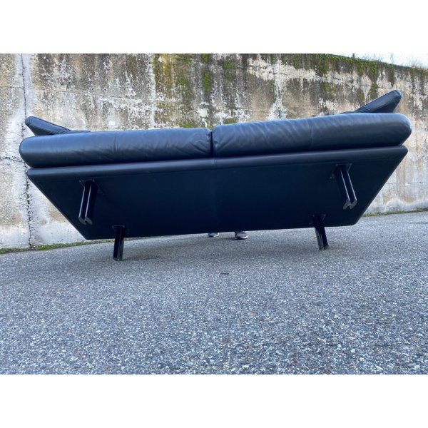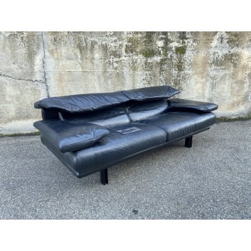 Fantastico divano realizzato dal produttore italiano di mobili B&B Italia nel 1980-90 design Paolo Piva, modello "Alanda", struttura in acciaio, imbottitura in poliuretano, rivestimento in pelle nera con braccioli e schienale regolabili, in ottime condizioni.