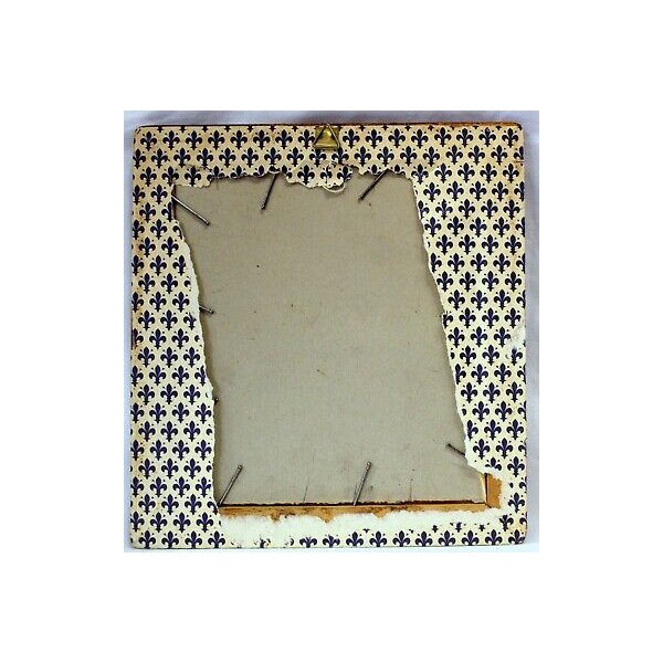 Ø MATERIALI: Icona in metallo su fondo rivestito in tessuto naturale con trama grezza, cornice lignea coeva all'opera.