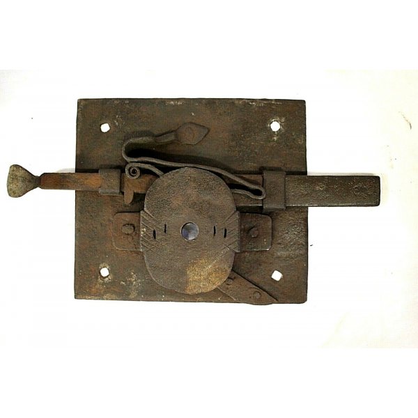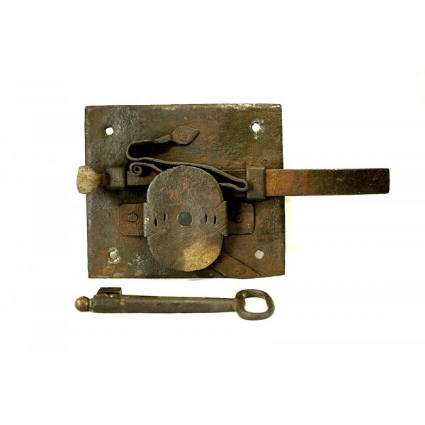 ANTICA SERRATURA ferro battuto CATENACCIO CHIAVE '700 DOOR LOCK IRON KEY OLD
