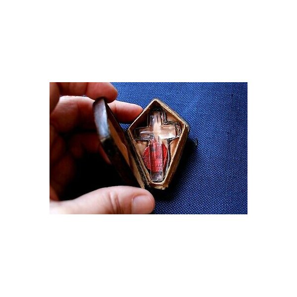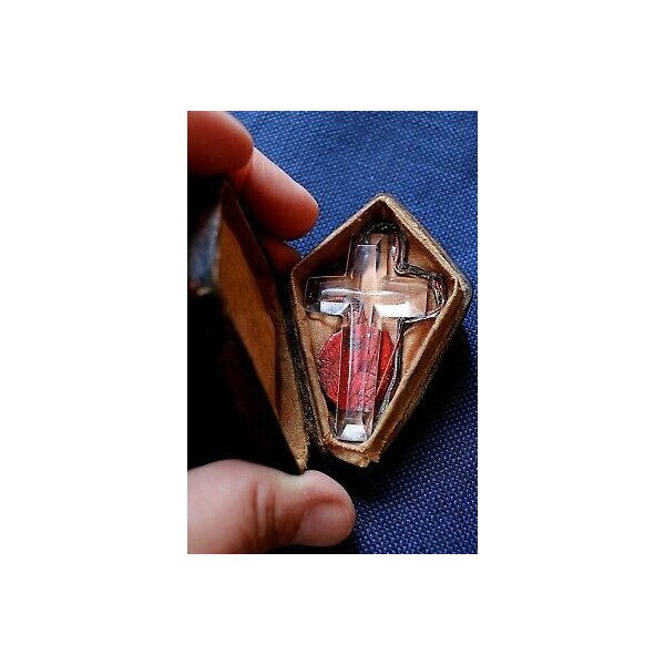 RELIQUIA 1700 CROCIFISSO CRISTALLO MOLATO BOLLA AUTENTICA CUSTODIA CUOIO LEGNO