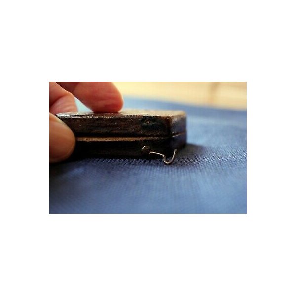 Ø MATERIALI: Scatola in legno e cuoio con interno rivestito in tessuto naturale, gancetto per la chiusura in metallo (mancante di un chiodino per la chiusura del gancio)