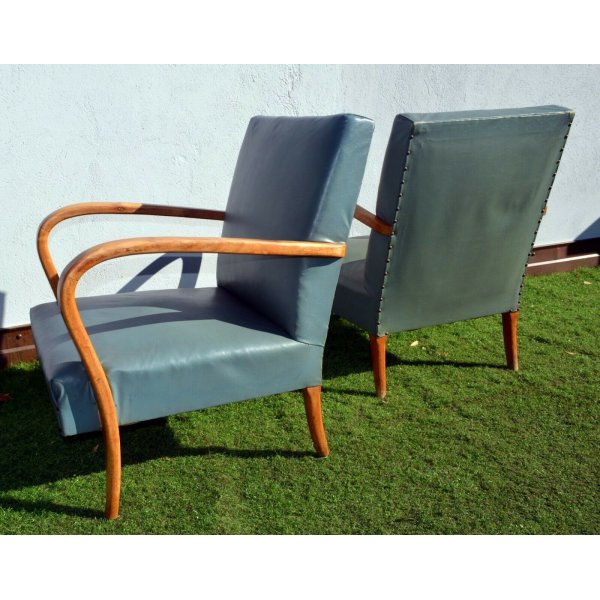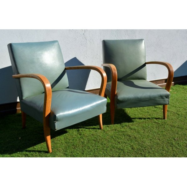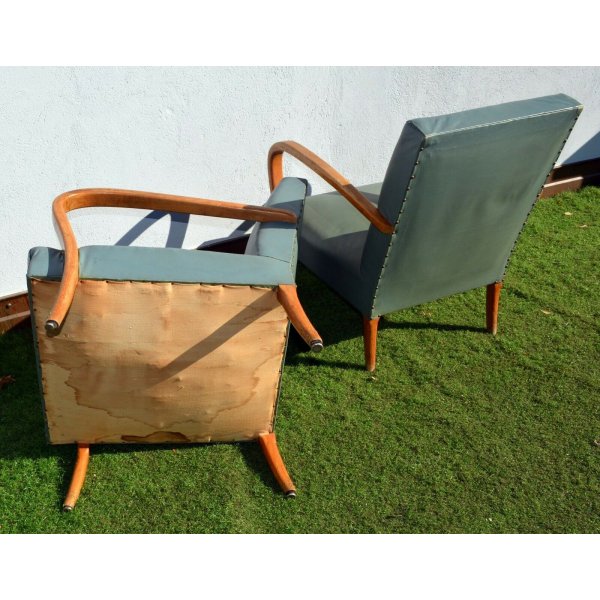 Ø TITOLO: Splendida coppia di sedie , poltrone imbottite in skay verde ,originale d'epoca . Inserzione di vendita per due sedie