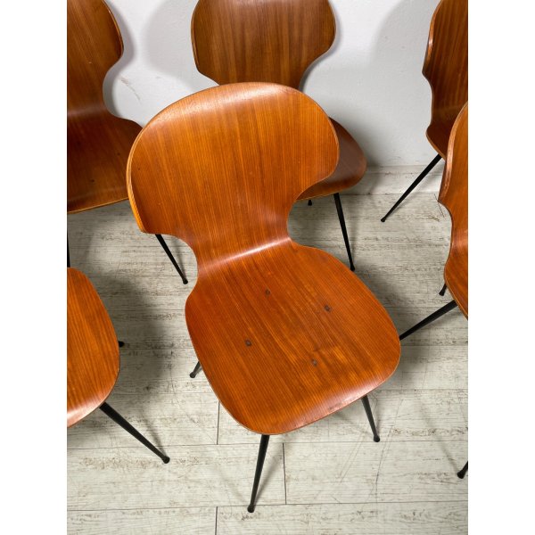 Splendido set 6 sedie Lulli di Carlo Ratti anni 50, struttura in metallo e seduta in legno curvato, vintage, buone condizioni.