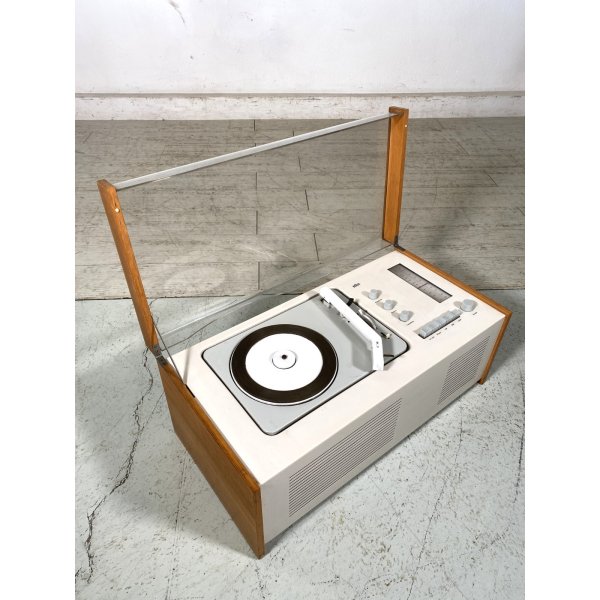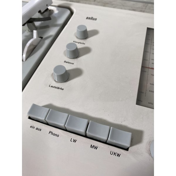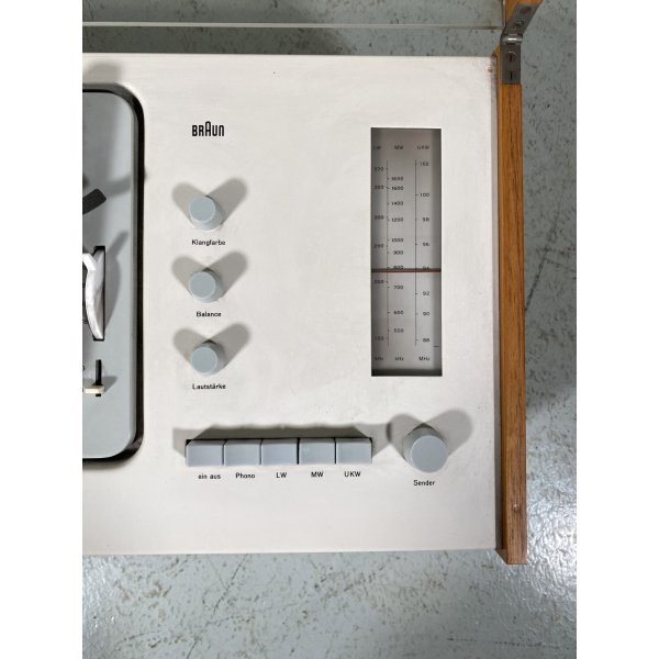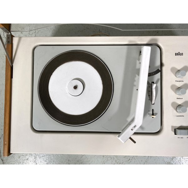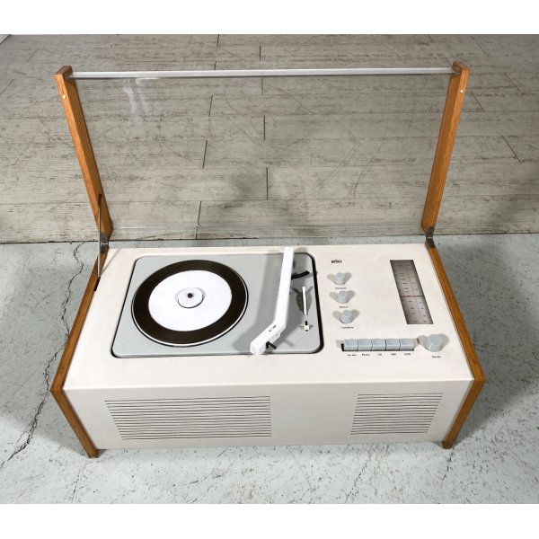 Splendido giradischi Icona del design tedesco degli anni '60, "Braun SK6" è un pezzo raro e ricercato, progettato da Hans Gugelot e Dieter Rams per l'azienda Braun. Il suo design minimalista e funzionale illustra perfettamente la filosofia di Dieter Rams: un design pulito e senza tempo, incentrato sull'uso. Un vero pezzo da collezione, esposto in musei come il MoMA, e un must per gli amanti dell'hi-fi vintage e del design modernista. Le sue condizioni estetiche sono buone, venduto come oggetto da collezione non funzionante, presenta lievi segni del tempo ed utilizzo compatibili con l'epoca.