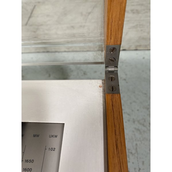 Condizioni: Condizioni estetiche molto buone, venduto come oggetto da collezione non funzionante, presenta lievi e normali segni del tempo ed utilizzo, come graffi sul plexiglass, segnalo nella parte inferiore interna del lato sinistro un pezzo di impiallacciatura scollato e usura del rivestimento sugli angoli tutto visionabile attraverso le foto allegate in inserzione.