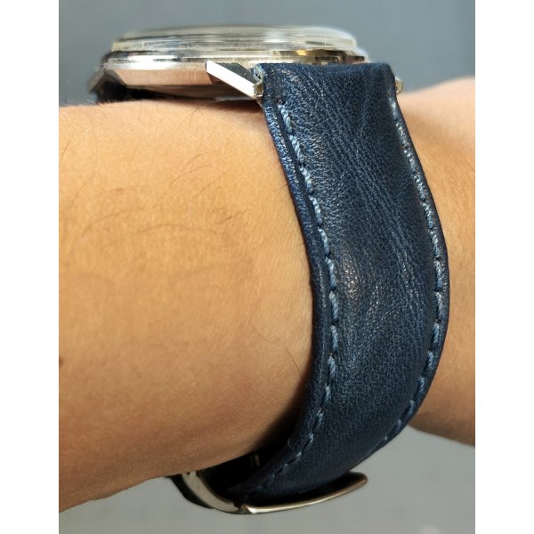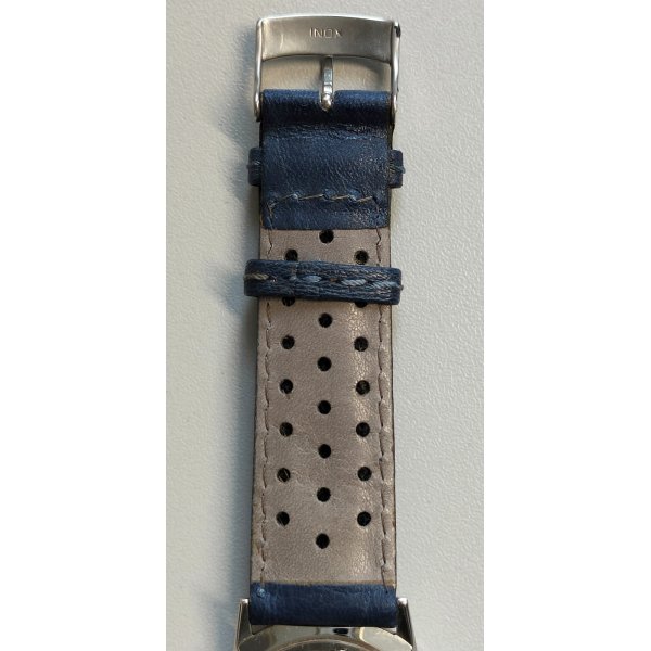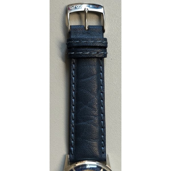 Materiali: Cassa in acciaio, cinturino in pelle blu