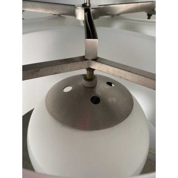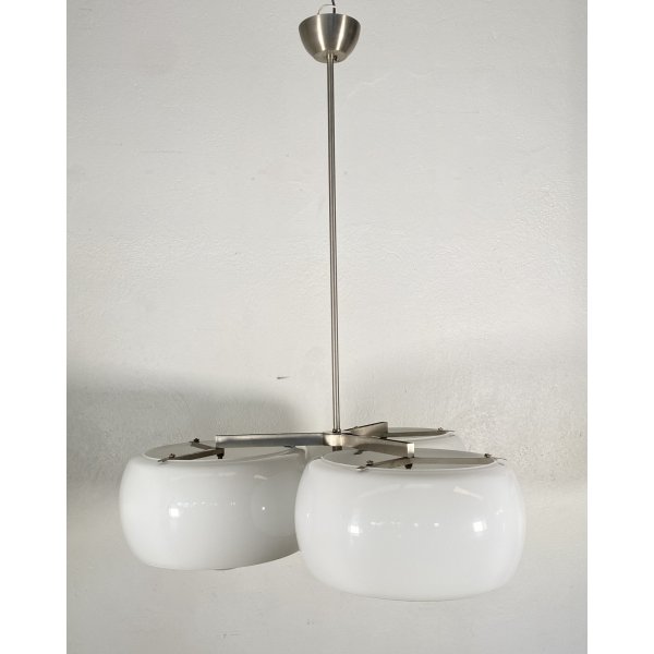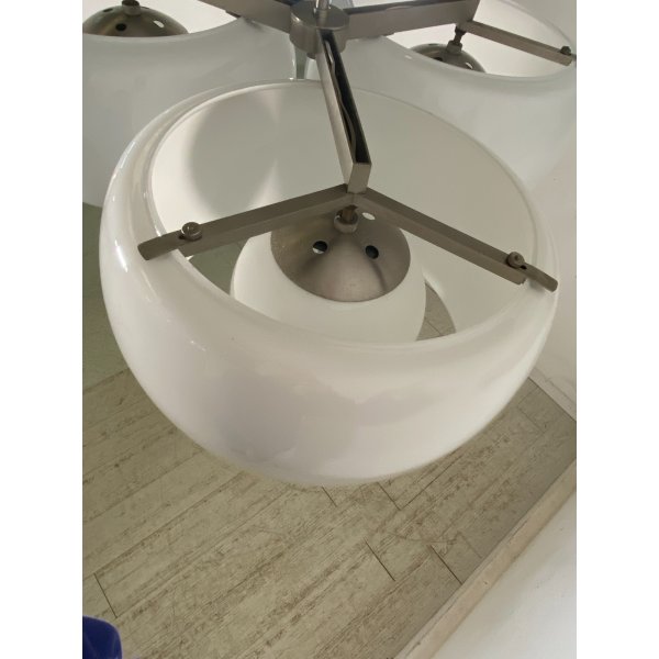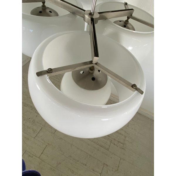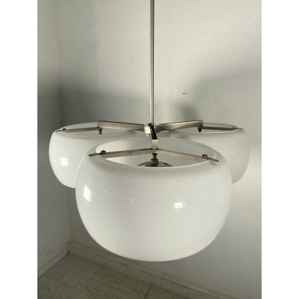 Note: Originale, bellissima sospensione Design italiano anni 70, nasce dalla composizione della lampada Clinio (1967) ripetuta modularmente a formare un gruppo illuminante di ampie dimensioni. Amatori e collezionisti non fatevela scappare!!!