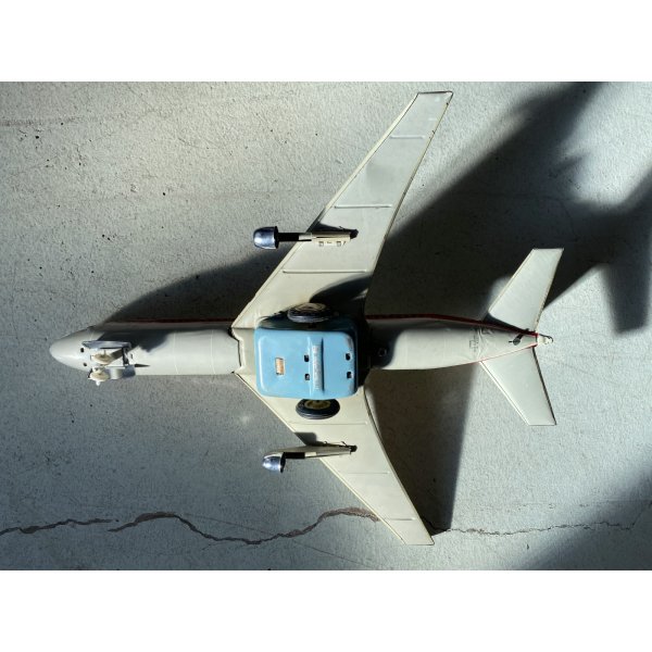 Stupendo aereo, modello di Boeing MF- 833 giocattolo in latta funzionante a frizione con decoro litografato: Jet Airliner - Friction - MF-833. In buone condizioni estetiche, giocato, amato, presenta alcuni segni di utilizzo come piccole ammaccature, ritocchi, alcuni graffi e leggero ingiallimento, compatibile con l'epoca. Spingendolo emette un rumore meccanico tipo "metronomo" che simula il rumore dei motori. Fusoliera e ali sono separabili. Tutto visibile dalle foto. Ascolta il breve video allegato