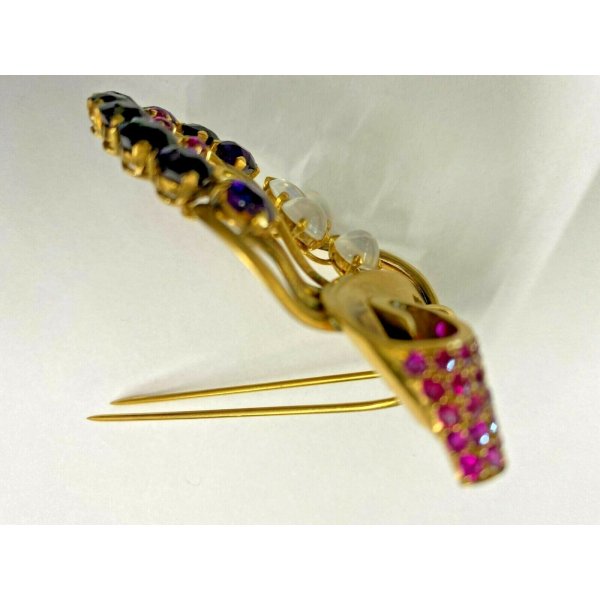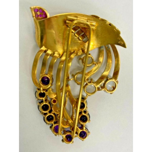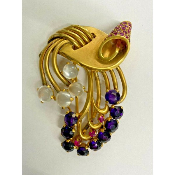 Bellissima, ma soprattutto unica spilla argento 800 con pietre colorate firmata Abate, storica gioielleria di Sanremo