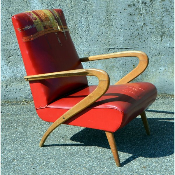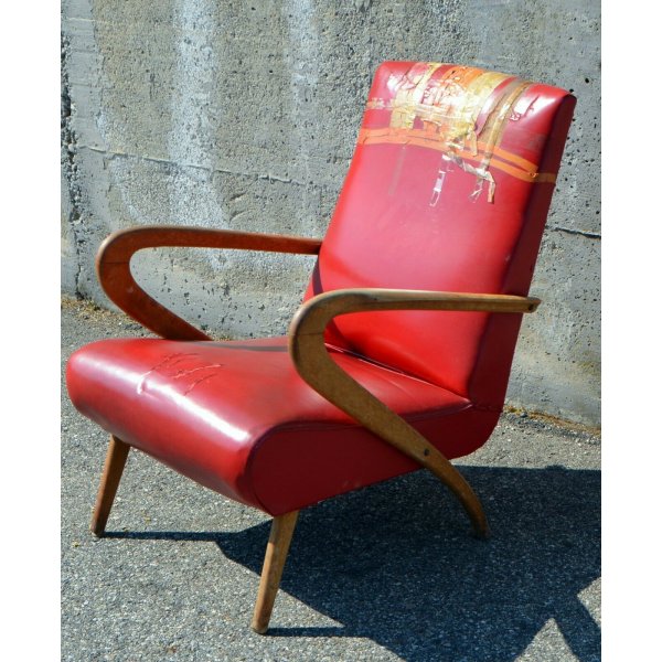 ANTICA POLTRONA 1950 SEDIA IMBOTTITA SKY DESIGN GUGLIELMO ULRICH SALA CHAIR OLD