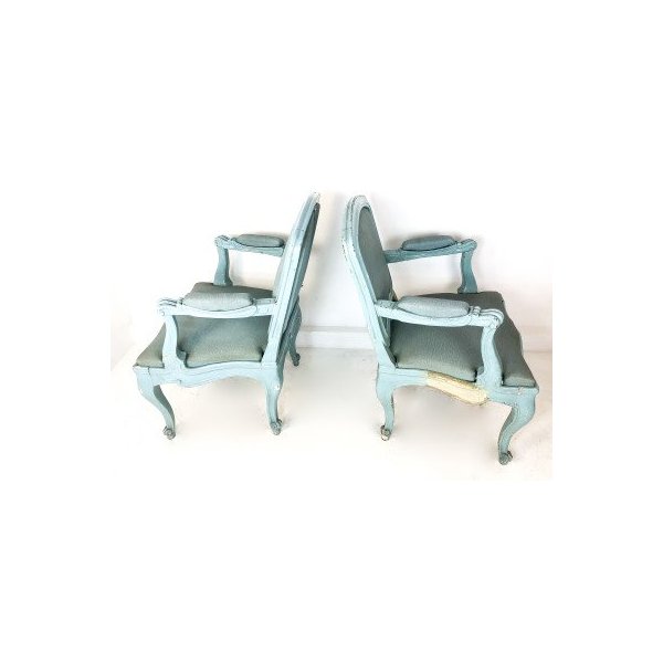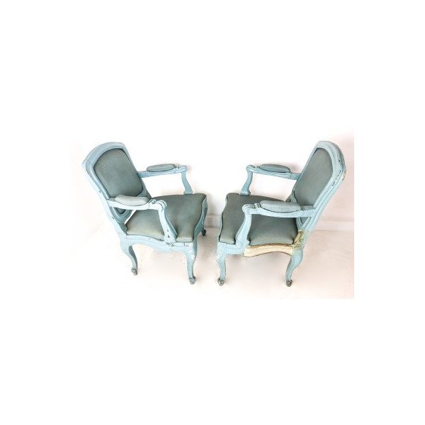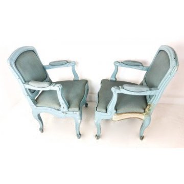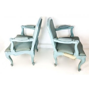 Le sedie sono strutturalmente sane. Hanno subito un intervento di laccatura in epoca posteriore. Riportano i normali segni del tempo e dell'utilizzo, chiaramente visibili in foto. In una delle due sono presenti prove di sverniciatura. Valutare attraverso le foto allegate.