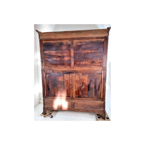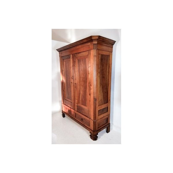 L'armadio è in ottime condizioni, come è facile constatare dalle foto allegate. Strutturalmente sano e pronto per essere utilizzato. Riporta i normali segni del tempo e dell'utilizzo: sporadiche tracce di tarlo non più attivo, qualche segno sulla lucidatura, piccoli strappi nella rivestitura interna. Valutare attraverso le foto.
