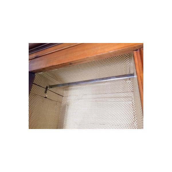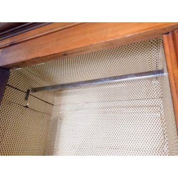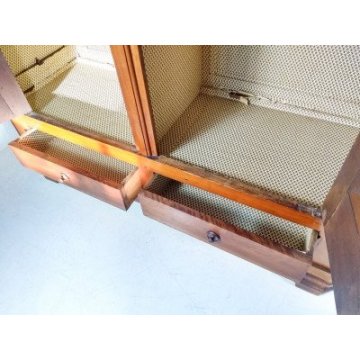 internamente rivestito in carta giglio, con due ripiani e asta appendiabiti. Chiave presente e serratura funzionante.
