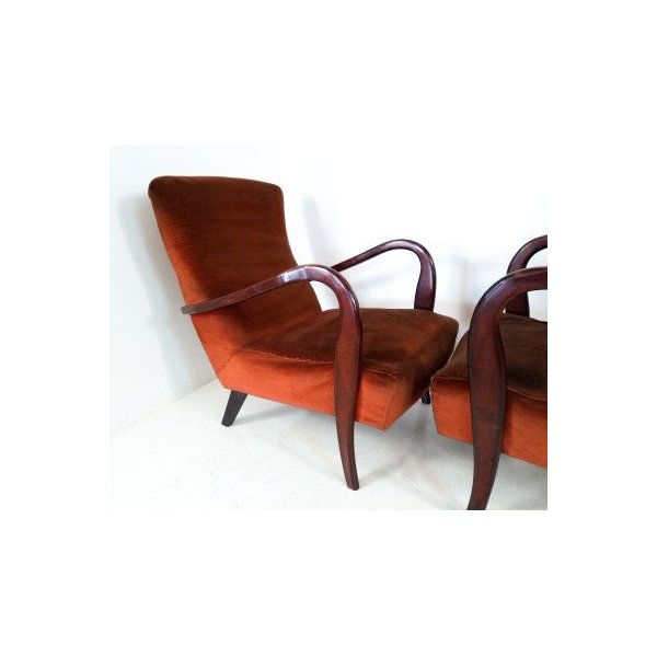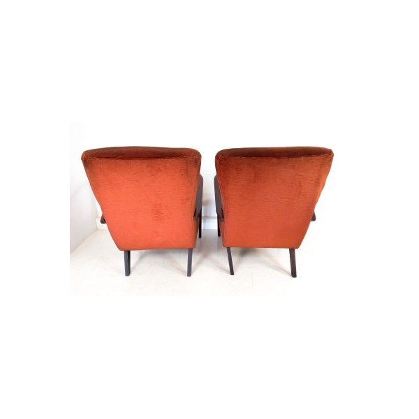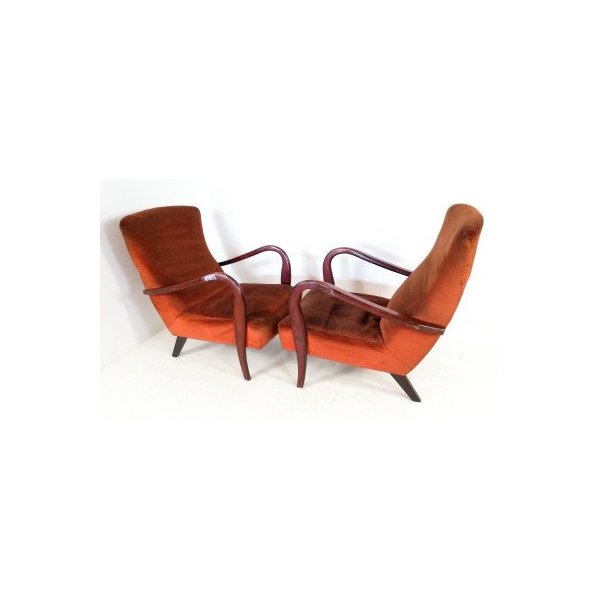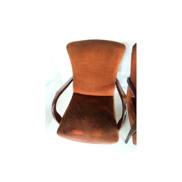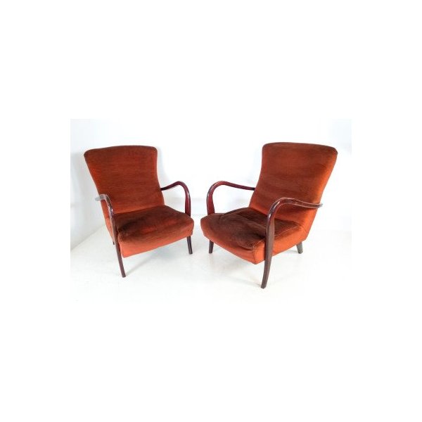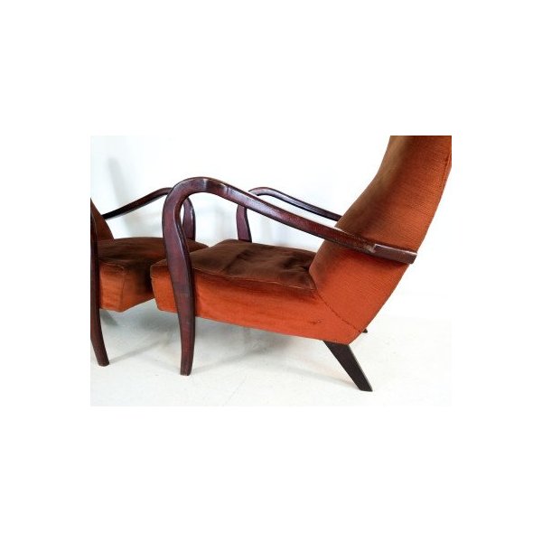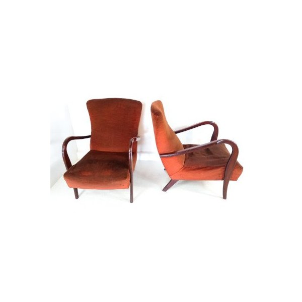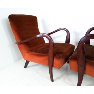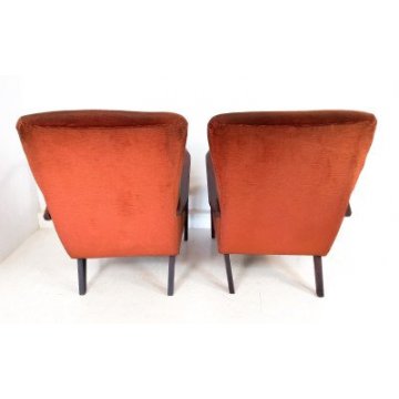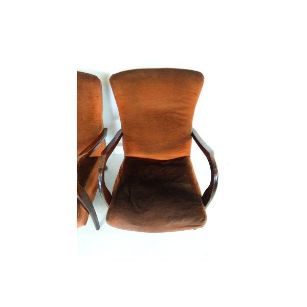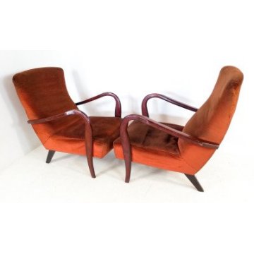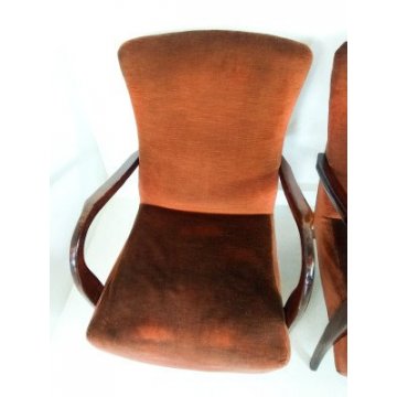 Le poltrone sono in condizioni molto buone, come è facile constatare dalle foto allegate. Riportano le normali tracce del tempo e dell'utilizzo, in particolare qualche segno sul legno. La struttura è sana, tessuto e imbottitura sono da risistemare. Valutare attraverso le foto.