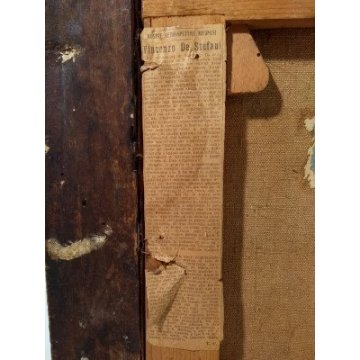 Sul retro è attaccato un trafiletto di giornale dell'epoca dedicato all'autore in cui si menziona la prima mostra retrospettiva dedicata all'autore, quella realizzata a Milano (galleria Dedalo) nel 1939.