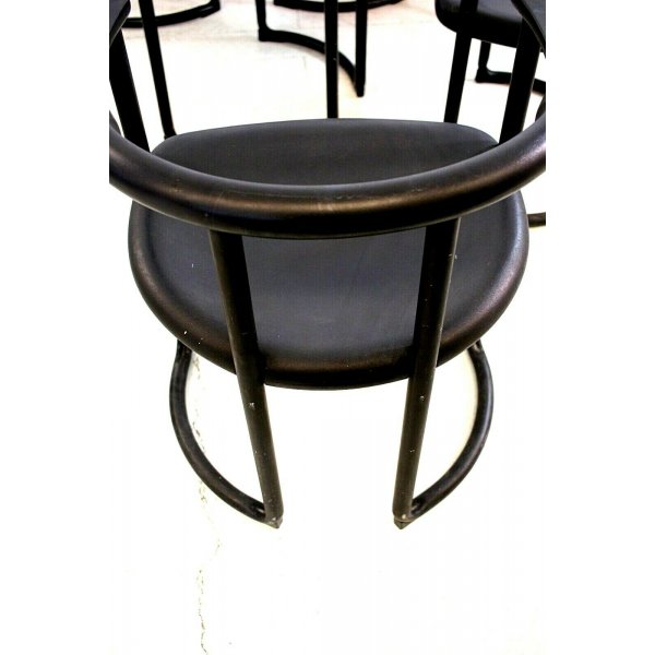Fantastico lotto di 6 sedie 'Achillea Chair' design Tito Agnoli prodotte da Ycami negli anni '70. Seduta in resina nera, struttura in metallo laccato nero, sulla base della seduta sono stampati logo e autore. Le sedie sono robuste ed in ottime condizioni, normali segni del tempo e di utilizzo, visibili dalle foto allegate all'inserzione.