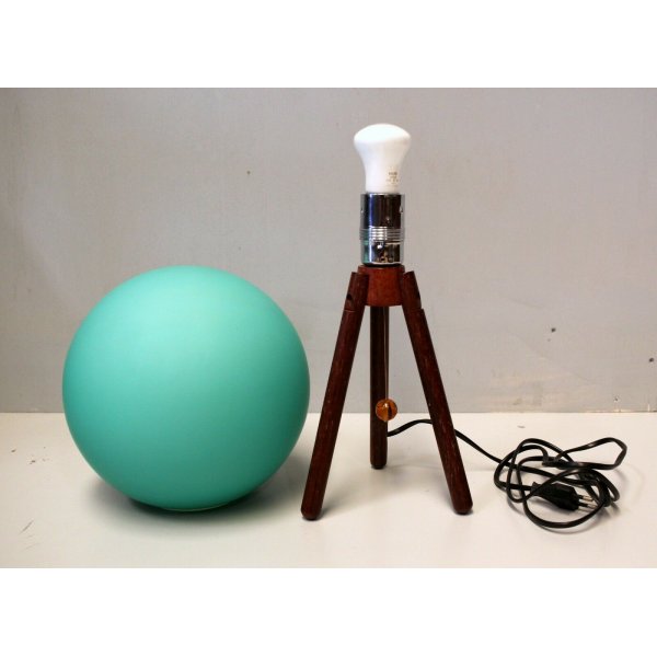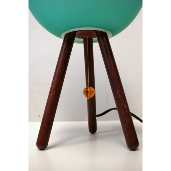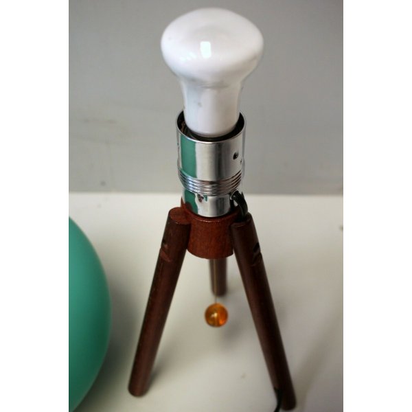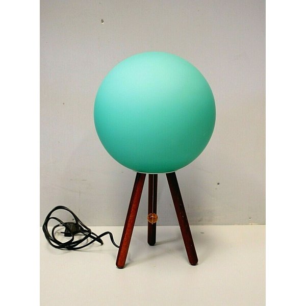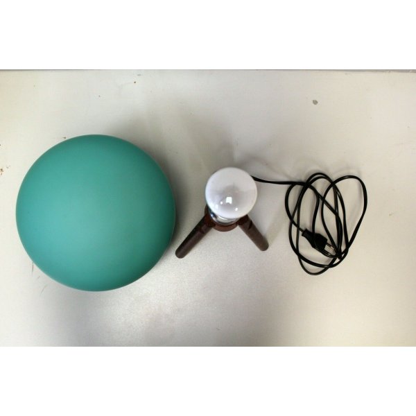 Materiali: struttura in legno, parelume in vetro opalino colorato verde acqua marina, impianto elettrico funzionante.