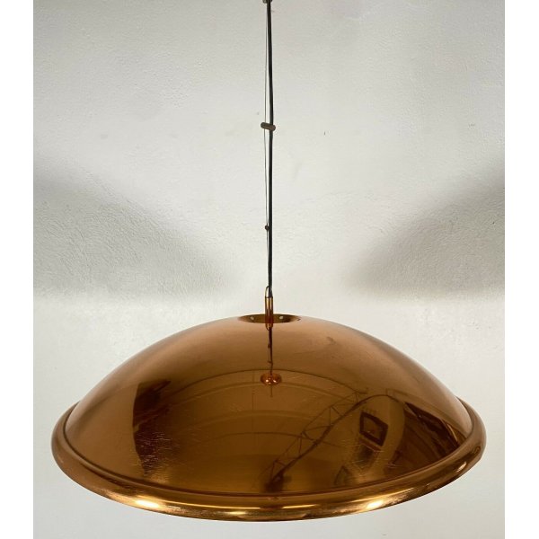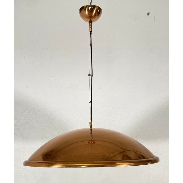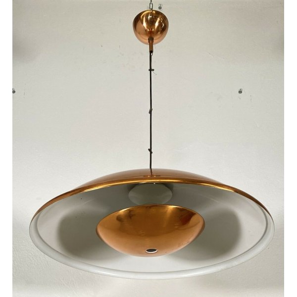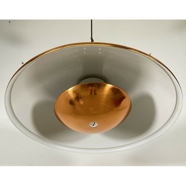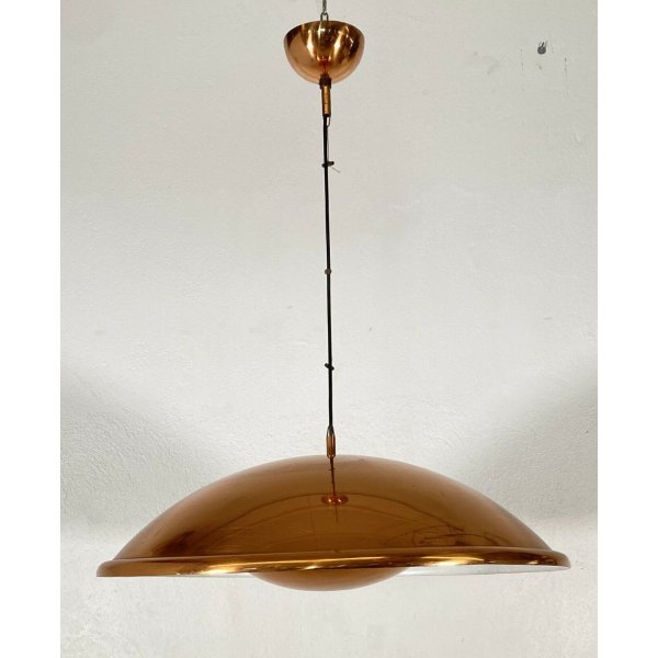 Stupenda lampada da soffitto vintage, anni '70. Struttura in metallo cromatura rame, design semplice, luce indiretta molto gradevole, priva di effetti abbaglianti. adatta alla zona pranzo o in cucina.