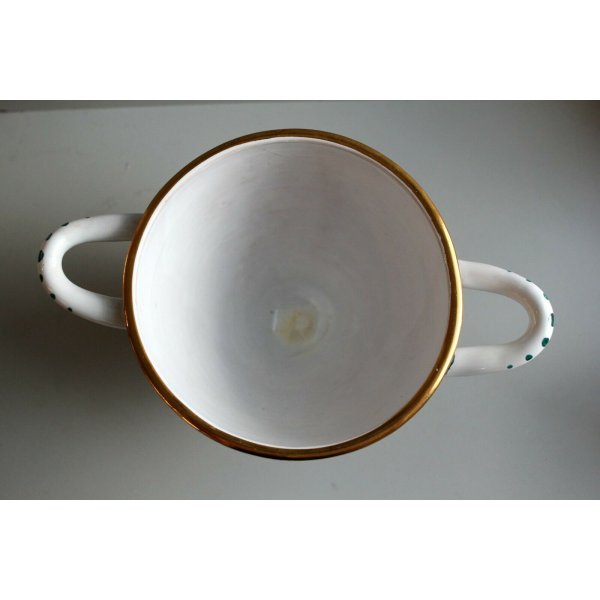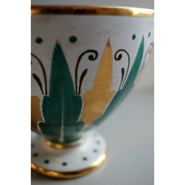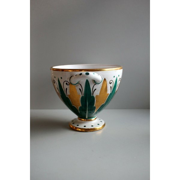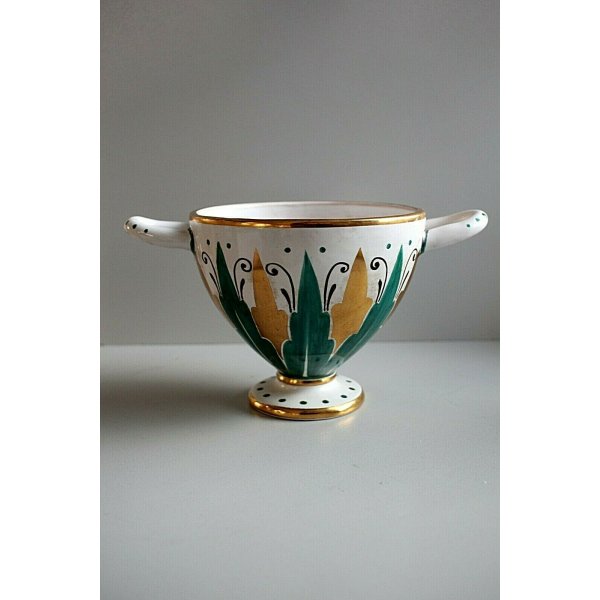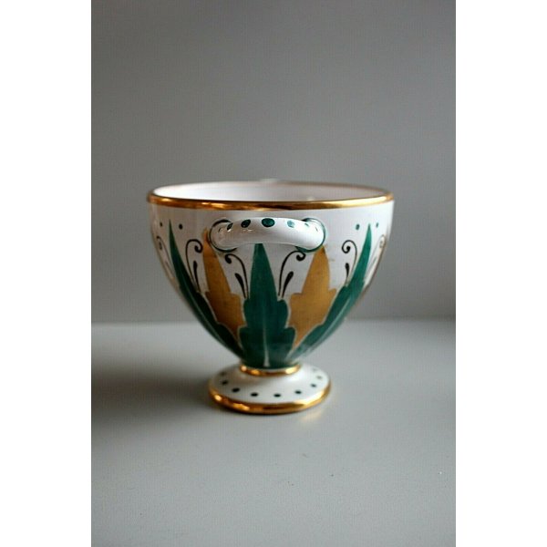 Modello: Vaso, coppa in ceramica smaltata decorata a mano in verde e oro zecchino
