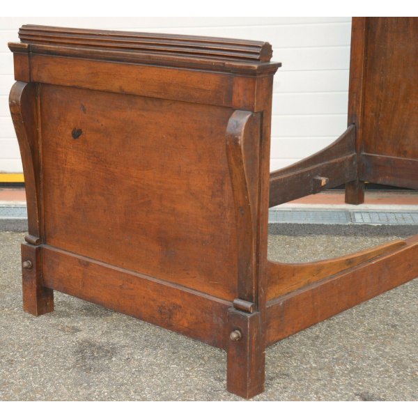 Incantevole letto ottocentesco, originale d'epoca, stile Impero Carlo X, in legno massello di noce, letto smontabile ad una piazza