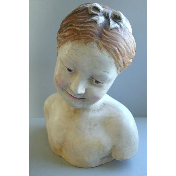 Stupenda scultura in terracotta dipinta a mano, riproduzione della celebre statua dello scultore italiano Pampaloni Luigi (Firenze 1791-1847) "La fanciulla del Pamploni".