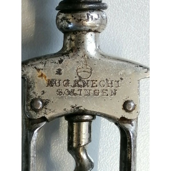 Delizioso ed antico cavatappi a tempio, apribile e con anello di sicurezza, originale d'epoca, firmato Aug. Knecht Solingen