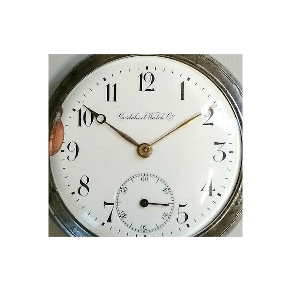Delizioso orologio da tasca anni 50/60, originale d'epoca, Cortébert Watch & Co., di altissima manifattura orologiaia, meccanico a carica manuale, non funzionante, quadrante bianco con numeri arabi e lunetta dei secondi alle ore 6
