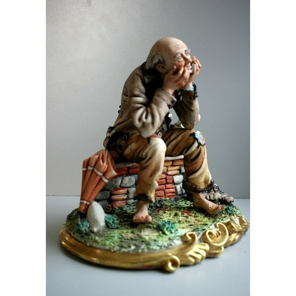 Note: Stupenda figura rappresentante un vagabondo, felice seduto su di una panchina. Originale Capodimonte decorato a mano... Da non perdere!