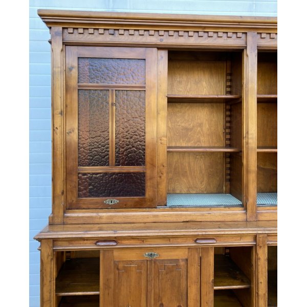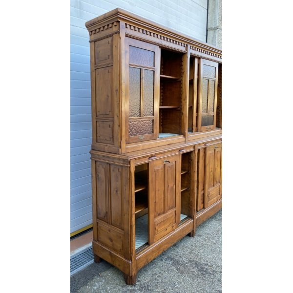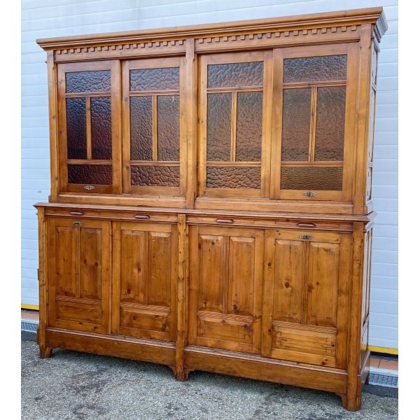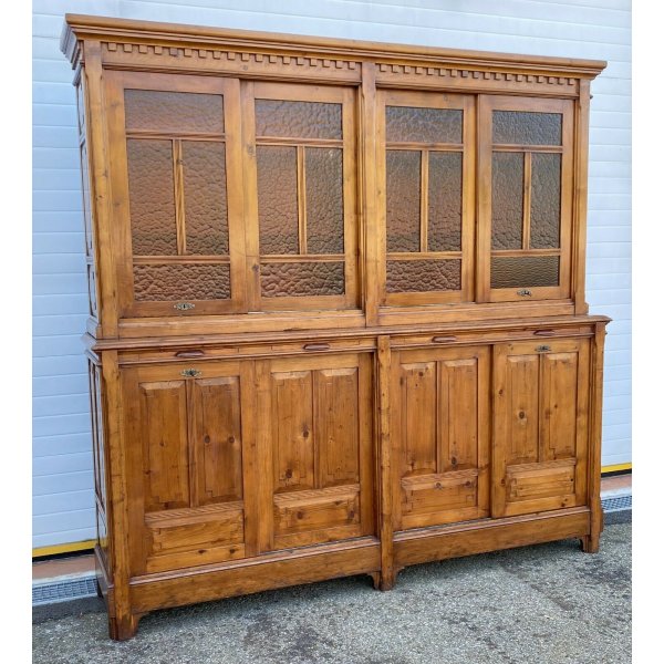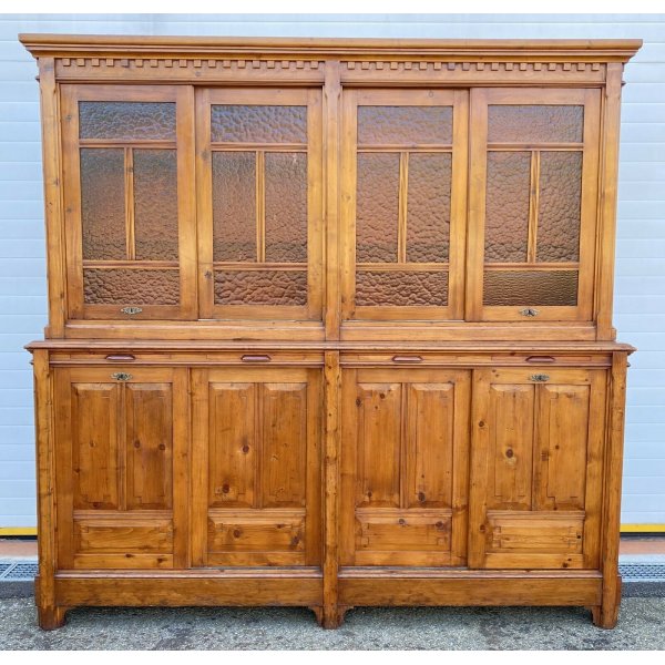 Fantastica antica credenza/farmacia della fine del 1800 in legno di abete con 8 ante scorrevoli di cui 4 con il vetro, possiede anche 4 tiretti da scrittoio