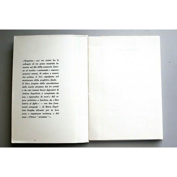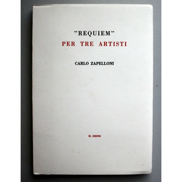 Piccolo volume, libro stampato nel 1964, scritto da Carlo Zapelloni, noto architetto che insegnò ed esercitò in Stresa nel '900. Dal titolo: "Requiem per tre Artisti" Una ballata in prosa per Eugenio per Eugenio Gignus, Clemente Rebora e Andrea Zapelloni. Per il Cigno.