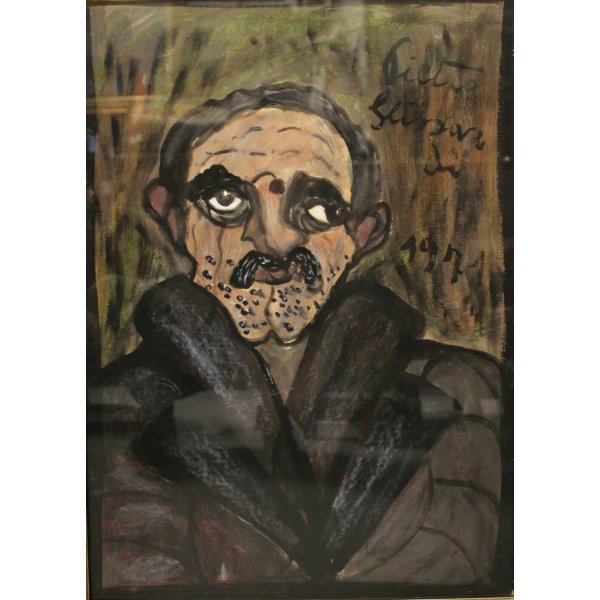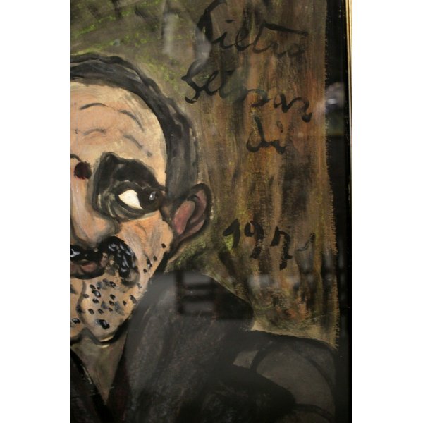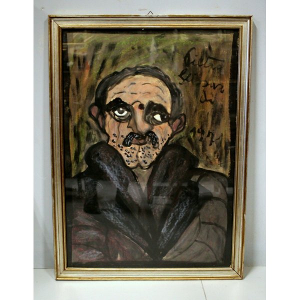 DIPINTO GUASH CARTONE Pietro Ghizzardi RITRATTO omaggio a Ligabue 1971 NAIF