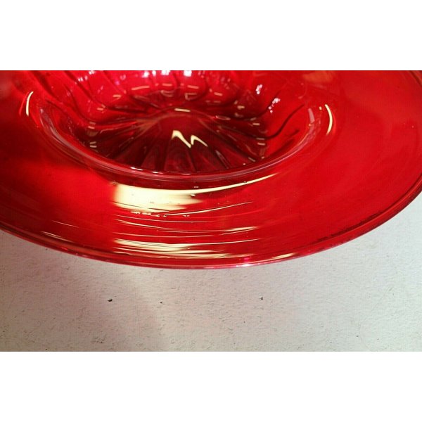 Meraviglioso piatto rotondo in vetro soffiato trasparente color rosso rubino, Il corpo del piatto ha un fondo baccellato, costolato e un ampia tesa, non presenta firma, per disegno e fattura è riferibile a Vittorio Zecchin.