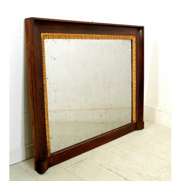 ANTICA SPECCHIERA CAMINIERA IMPERO CORNICE NOCE DECORO FOGLIE D'ACANTO ORO1840