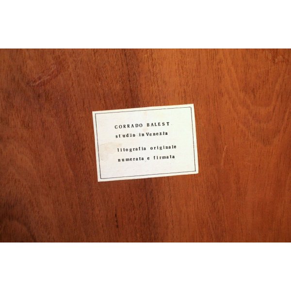 Autore: Balest Corrado - Nativo della provincia di Belluno e precisamente a Sospirolo nel 1923, Balest è un artista poliedrico. Dal punto di vista artistico si forma all'Accademia di Belle Arti di Venezia, dopo essersi trasferito prima dello scoppio della seconda guerra mondiale. Dal 1950 inizia la sua autonoma attività professionale dopo aver avuto come insegnante Guido Cadorin. Nello stesso anno espone alla Fondazione Bevilacqua La Masa.Partecipa a numerose mostre collettive e realizza mostre personali a Venezia, nel Veneto in generale, a Roma, Vienna e Milano. La figura dell’artista ha sullo sfondo il contesto storico e culturale del secondo dopoguerra, dove all’incertezza del quadro politico ed economico si contrappone l’entusiasmo per la liberazione dal fascismo, motore di un rinnovamento nei contenuti e nel linguaggio dell’arte. Mentre nei bar e nei caffè della città lagunare si sviluppa un animato dibattito fra astrattisti e figurativi, arricchito dalla presenza di artisti del calibro di Filippo De Pisis e di Virgilio Guidi, Balest decide di non schierarsi, partecipando solo marginalmente. Secondo la sua concezione, l’arte è piena di contraddizioni e va ricercata ovunque; per questo la “sua pittura” attinge indifferentemente sia dall’astrattismo che dal figurativo, senza contrapporre fra loro le due correnti.Dalla pittura Balest si dedica anche al disegno di varia tecnica (penna, carboncino), all’incisione (in particolare all’acquaforte), alla scultura, alla terracotta, ai bronzi, sino a passare dal 1985 alla pittura parietale.(...)Muore il 5 ottobre 2016 all'Ospedale Civile di Venezia.