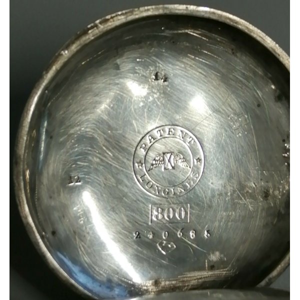 Splendido ed antico orologio da taschino originale d'epoca Longines, cassa in argento 800 con doppio fondello