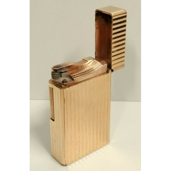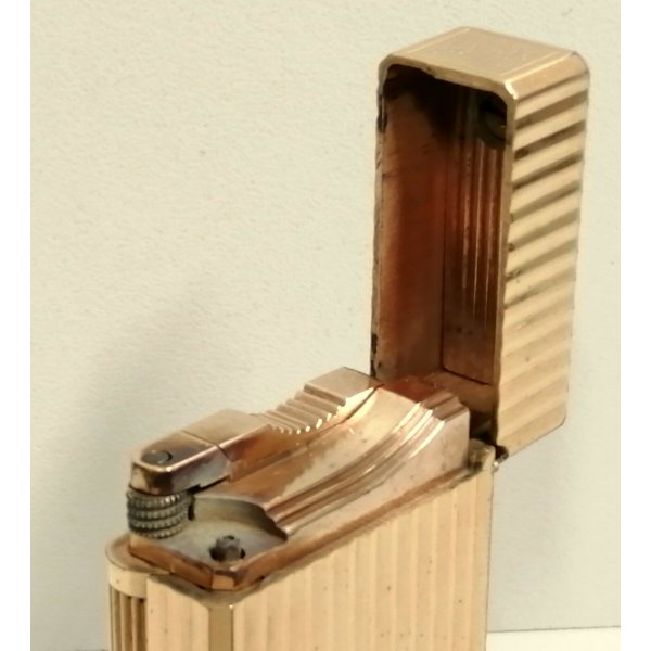 Delizioso accendino dorato St. Dupont, originale d'epoca, marchiato sul fondo, corpo con motivo costolato, da revisionare