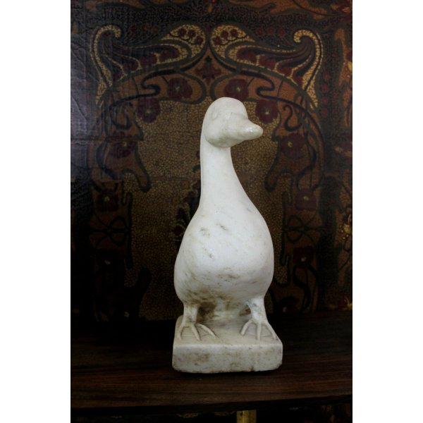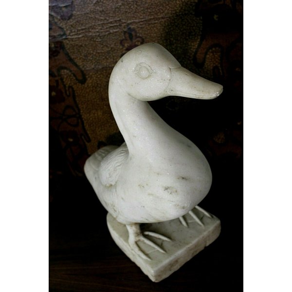 Meravigliosa antica scultura a tuttotondo rappresentante la figura di un'anatra realizzata in pietra granitica bianca con riflessi cristallini con dettagli accuratamente scolpiti e particolareggiati, le sue dimensioni sono paragonabili a quelle di un'anatra vera è perfetta per un giardino paesaggistico, per fontane, cortili, ma anche per interni. Questa scultura ha impreziosito il giardino di una antica villa signorile sul Lago Maggiore.