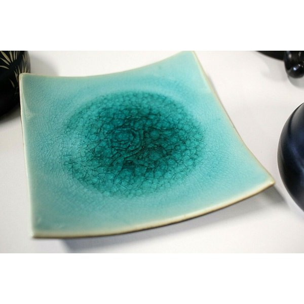 Materiali: Ceramica gres nero, smalto verde acqua craclé glaze
