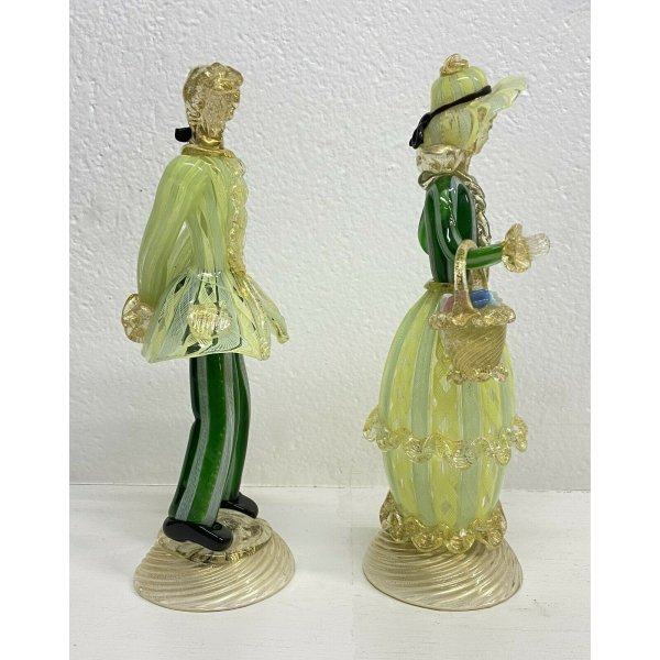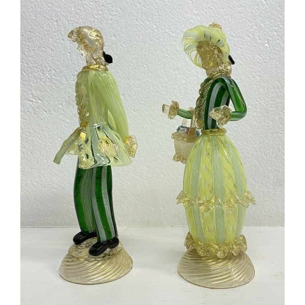 Fantastica coppia di sculture veneziane con uomo e donne in vetro di murano degli anni 30/40, attribuibili a Ercole Barovier