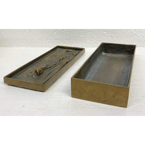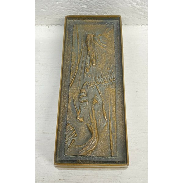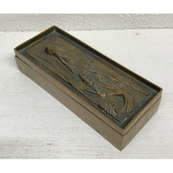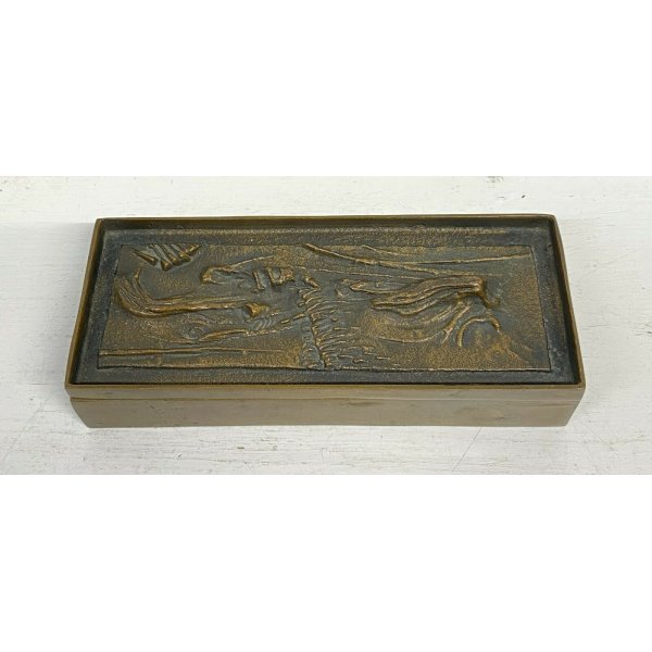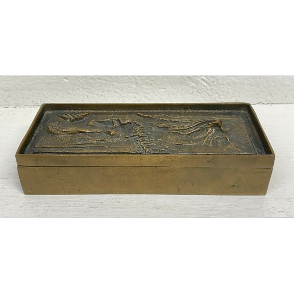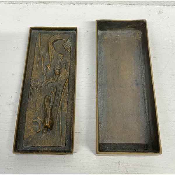 Fantastica antica scatola in bronzo con coperchio decorato in rilievo del 1950/60 di Gio e Arnaldo Pomodoro