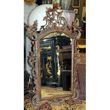 Ø TITOLO: Grande ed elegante specchiera Liberty , originale d'epoca, finemente intagliata ed arricchita con splendidi motivi floreali e un bellissimo specchio d'epoca