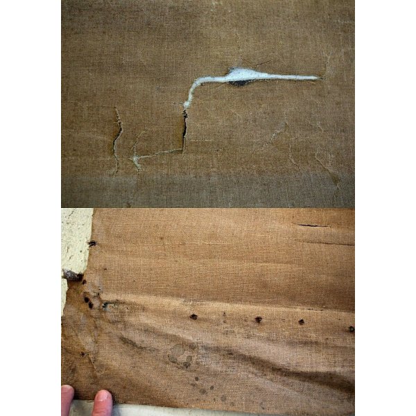 Condizioni: L'opera è antica, presenta evidenti segni del tempo, è stata rimossa dal telaio e ora si presenta arrotolata, le sue condizioni sono visibili dalle foto allegate all'inserzione. In basso si può notare un o strappo di circa 15cm e usura causata dall'arrotolatura.