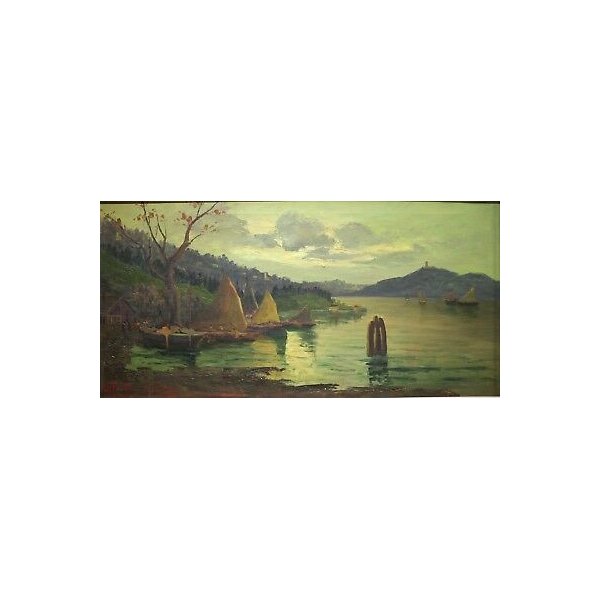 ANTICO QUADRO DIPINTO OLIO TELA Pino Pessina Da Castanedo PAESAGGIO LAGO ORTA
