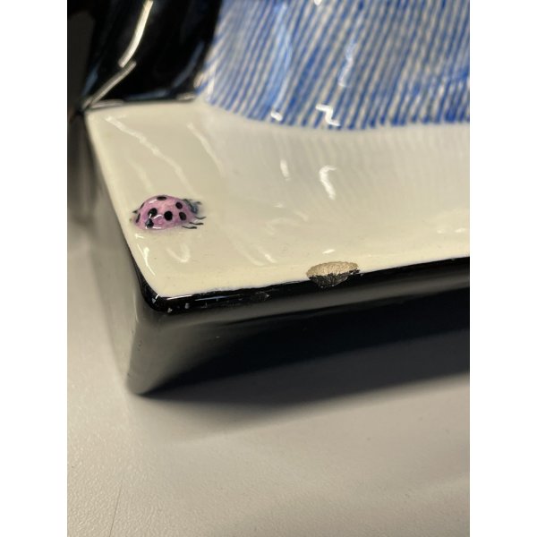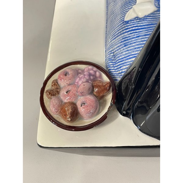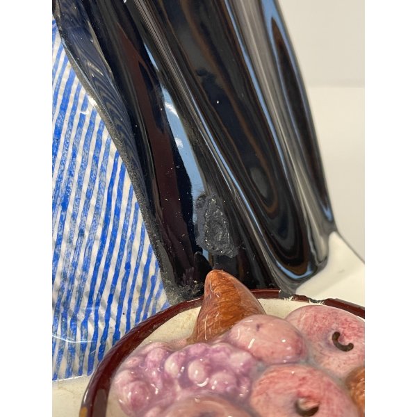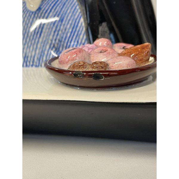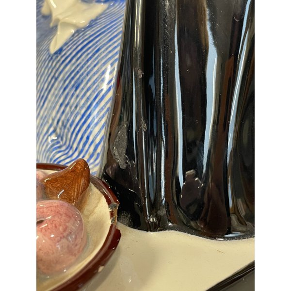 Condizioni: Buone condizioni, usata, anni 30, normali segni del tempo, segnalo varie sbeccature: sul naso della madonna, sulla testa della coccinella, sul bordo del piatto di frutta e vari segni e sbeccature sul vestito nero della madonna. Guardare attentamente le foto allegate in inserzione!!