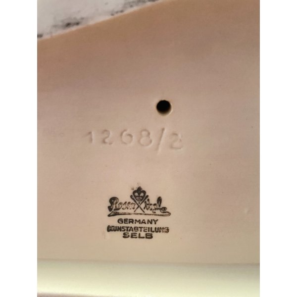 Stupenda grande scultura a tuttotondo in ceramica biscuit color avorio, rappresentante una figura femminile distesa "Reclining nude - model # 1268 / 2". Opera di Gustav Adolph Bredow (1875-1950) disegnata negli anni '30 per Rosenthal Germany. Lunghezza 51 cm - larghezza 20 cm e Altezza 33,5 cm, circa. Raro centrotavola Art Déco in ottime condizioni conservative. Contrassegnato in marrone da Rosenthal Germany e numerato in pasta: 1268/2 sulla base. Opera firmata "Bredow" sul basamento