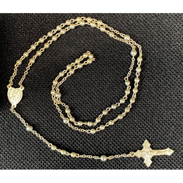 Bellissimo rosario in argento 800 punzonato sia nel retro della croce che nella placca centrale, contenuto in una vecchia scatola.